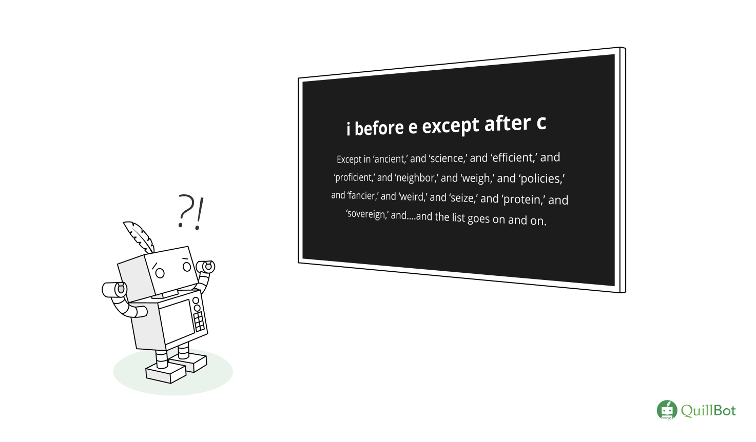 Rancaño, G. (2025, November 04). I before E except after C | Examples & Exceptions. Quillbot. Retrieved March 29, 2026, from https://quilbot.jintools.com/blog/common-mistakes/i-before-e-except-after-c/