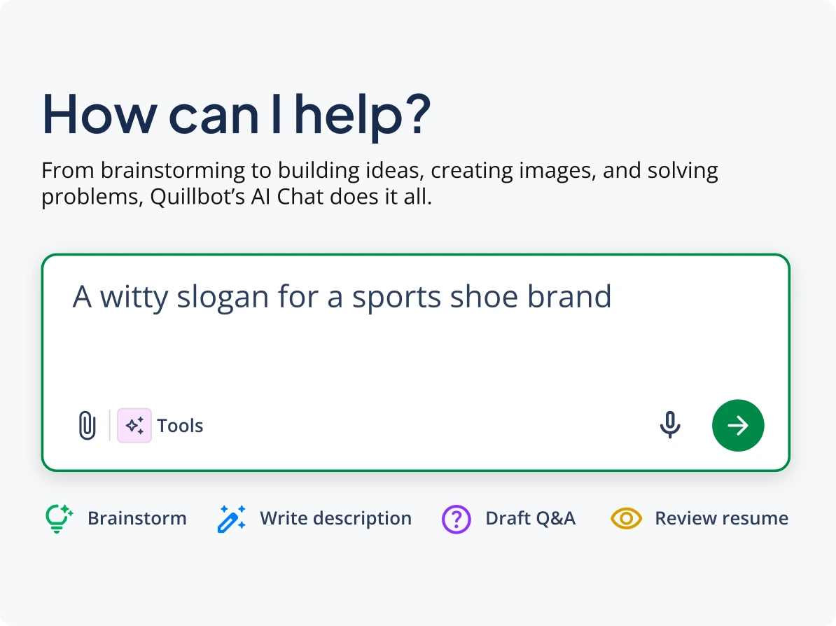 Looking to add even more variety to your journaling routine? Ask QuillBot’s free AI Chat to show you journal prompts on any topic you want to write about.