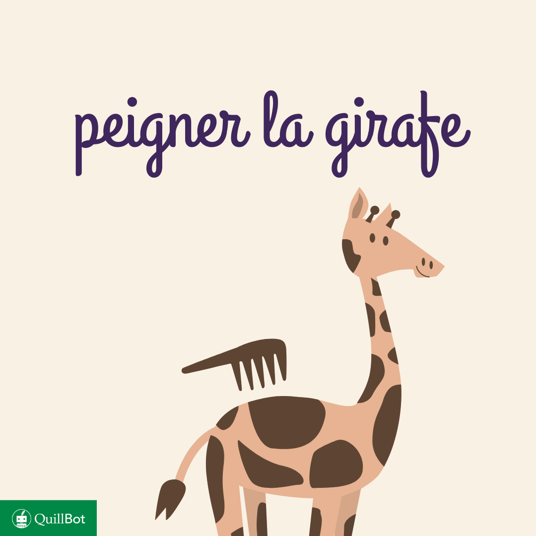 Tautou, A.S. (4 novembre 2025). Peigner la girafe : définition et origine de l’expression. Quillbot. Date : 25 mars 2026, issu de l’article suivant : https://quilbot.jintools.com/fr/blog/locutions-et-expressions-francaises/peigner-la-girafe/