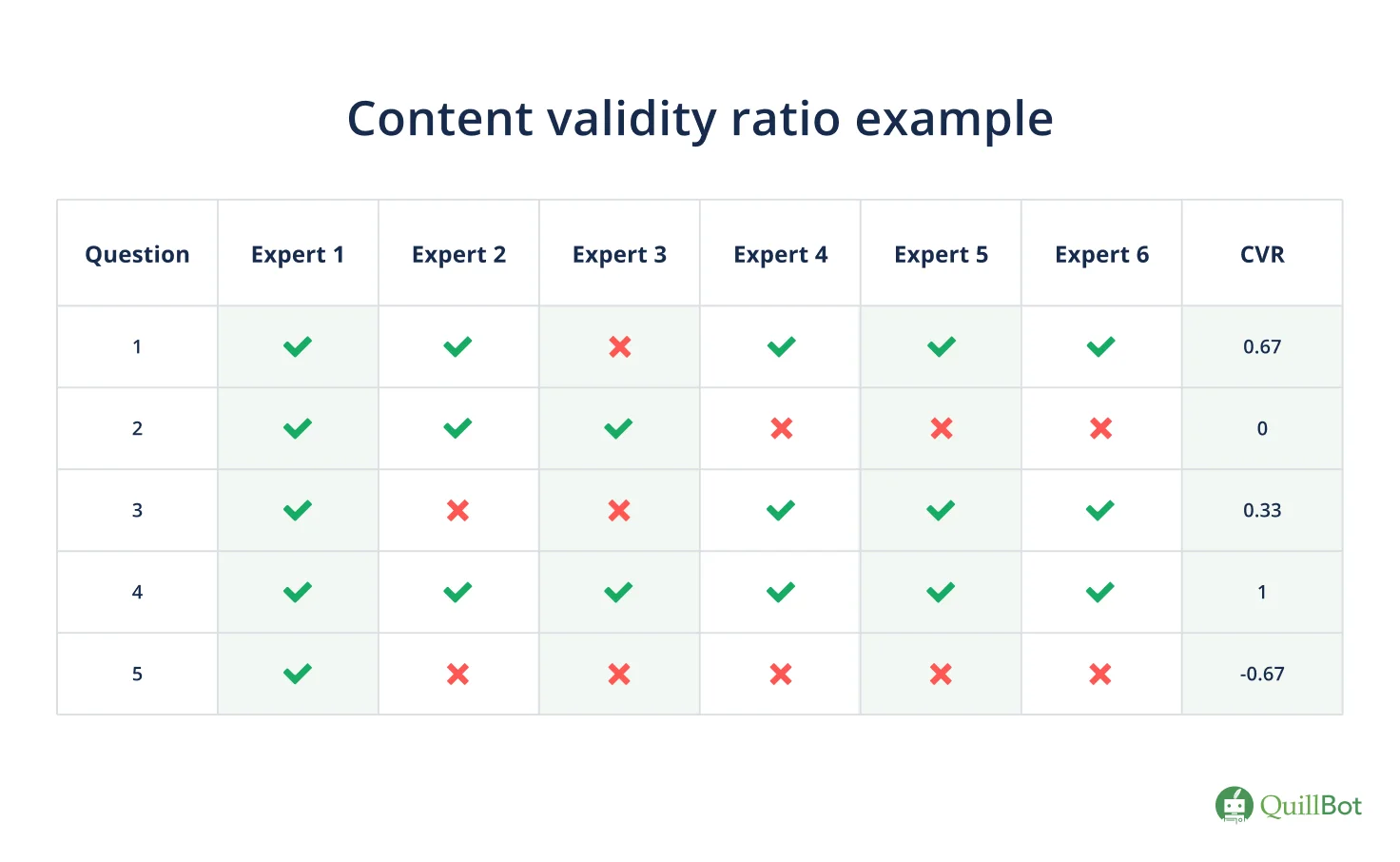 - Step 2: Calculate the content validity ratio (CVR)