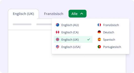 Humanisiere KI-Texte in Spanisch, Deutsch, Französisch, Portugiesisch und vier englischen Dialekten (US, UK, AU und CA).